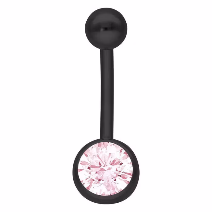 Navelsmycke Titan svart rosa sten 1,6x8 mm