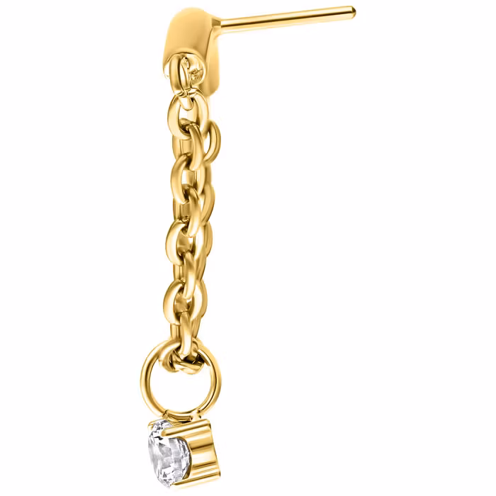 Floating helix smycke i guldig färg med en hängande kristallsten.