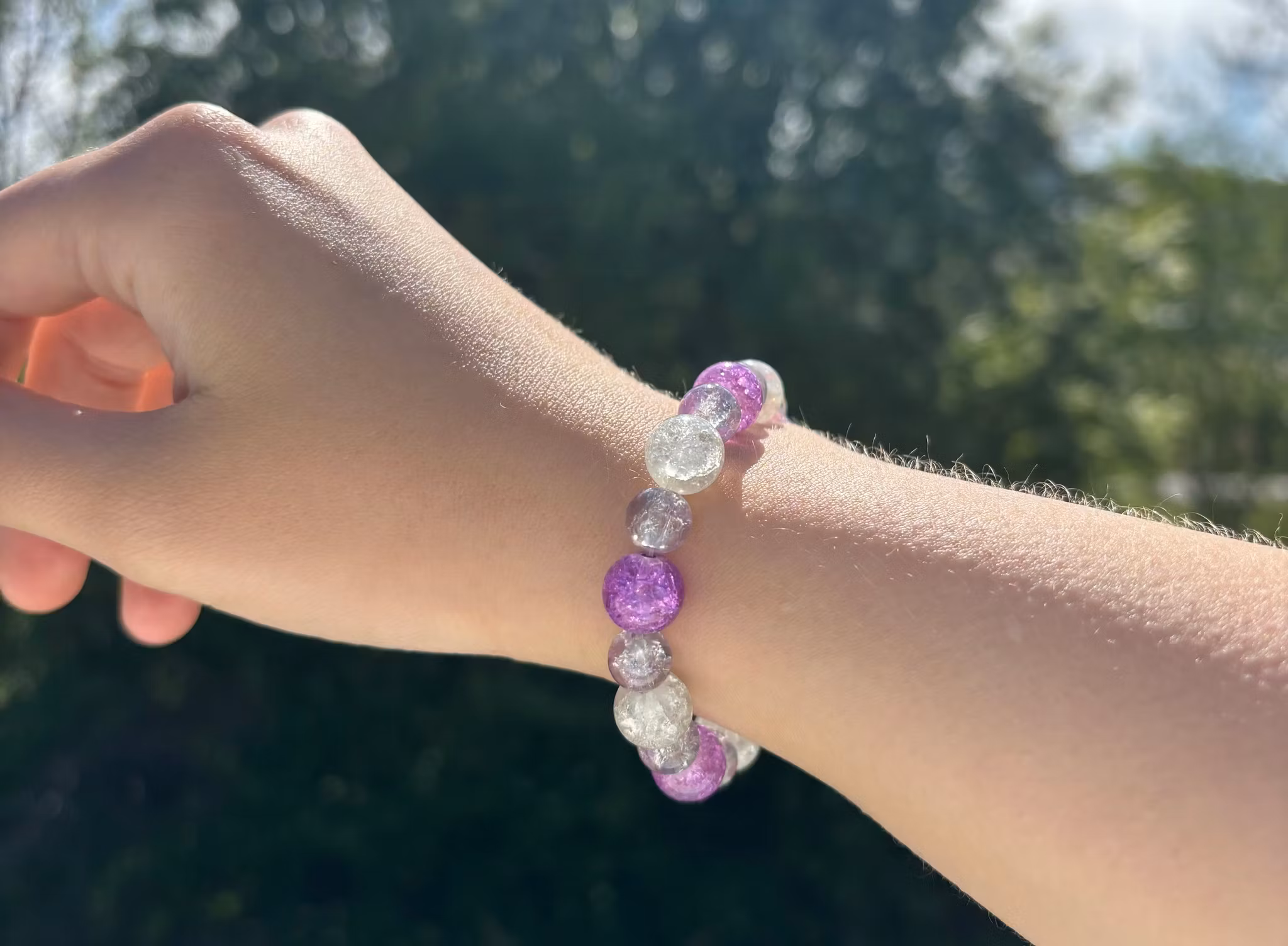 Lila/klar skiftande krackelerade glaspärlor 8 mm