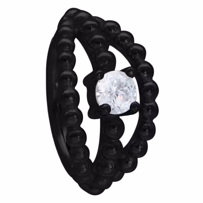 Clickkering i svart med trippeldesign och en vit sten i mitten