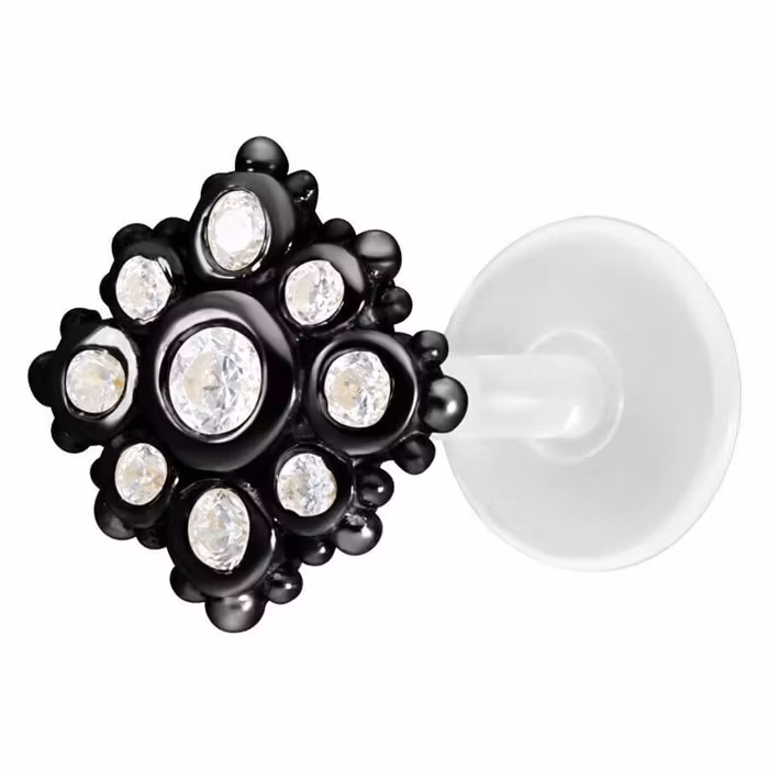 Labretstav med svart topp och vita kristallstenar 1,2x8 mm