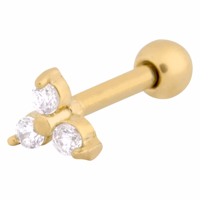 Stav i guldig färg med tre små vita kristallstenar 1,2x8 mm
